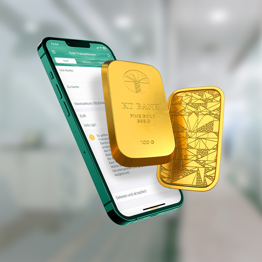 Kaufe und verkaufe physisches Gold direkt in der KT Banking App. Transparent. Digital. Jederzeit verfügbar.